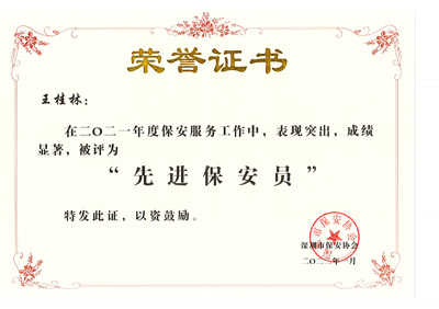 榮獲2017-2023年度深圳市公安局優秀保安公司,深圳市保安協會常務理事單位(十大常務理事單位之一)