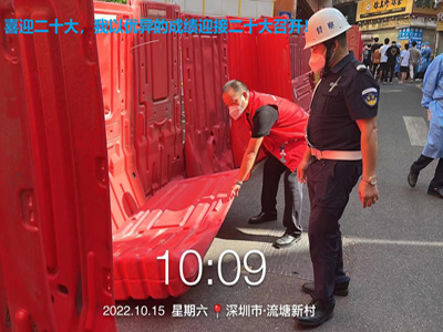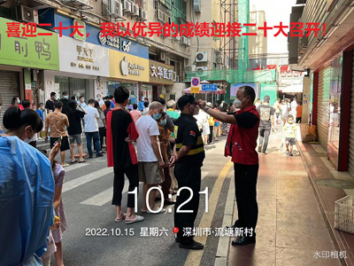 鐵保宏泰安保隊員助力寶安西鄉街道流塘荔景小區喜迎二十大,慶祝二十大召開。