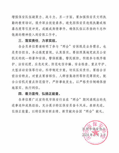 深圳市保安協會發布關于"兩會"安保隊伍維穩通知