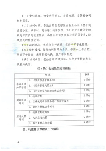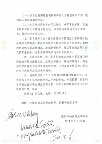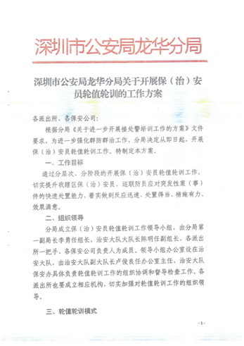 深圳市公安局龍華分局開展保(治)安員輪值工作方案